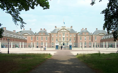 Op het voorplein staat een fontein met dolfijnen. Deze fontein heeft gediend als drinkwaterbron voor de jachtpaarden. De paarden werden ondergebracht in de westvleugels en het personeel in de oostvleugel. Deze zijvleugels hebben een eenvoudige gevel. Het paleis is vrij sober voor een bouwwerk uit de tijd van de barok. Deze soberheid is kenmerkend voor Nederland en andere protestante landen. Onder de weinige decoraties vallen de zandstenen timpanen op. De jachttaferelen die erop afgebeeld zijn roepen de oorspronkelijke functie als jachtslot in herinnering.