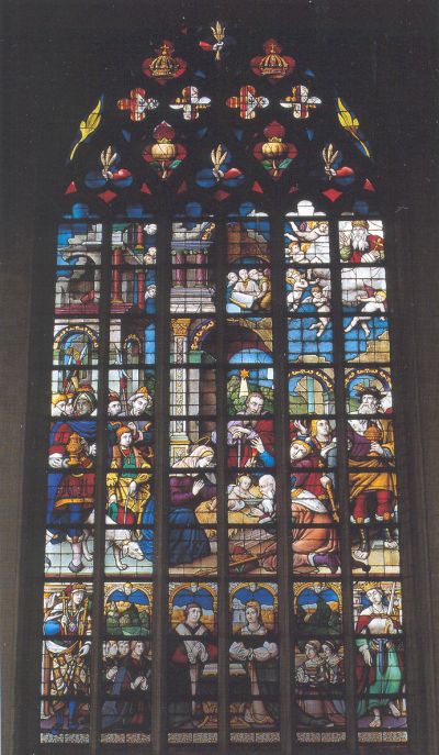 Anoniem, Aanbidding der Koningen, 1537, gebrandschilderd glas